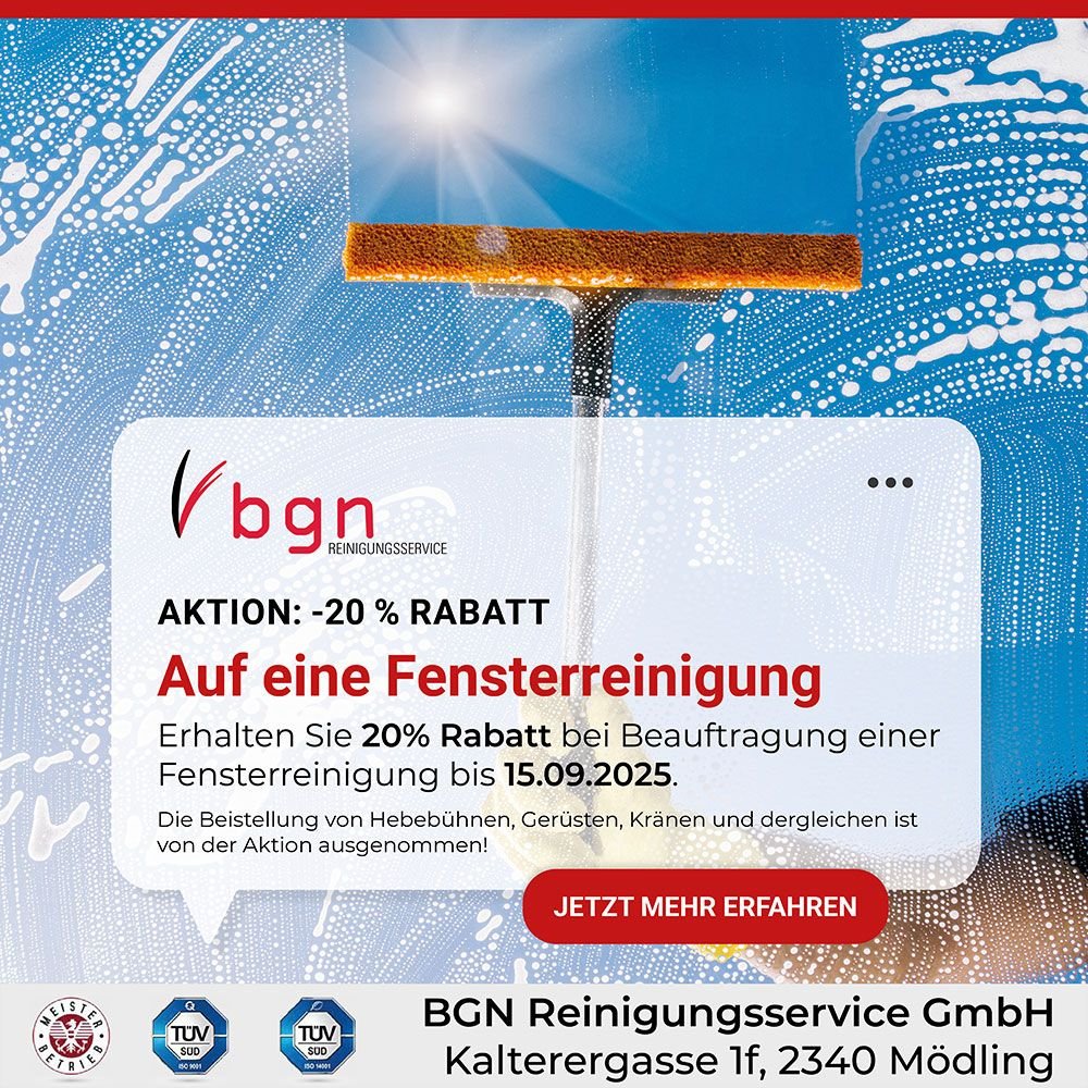 Mit bgn sind Sie glasklar im Vorteil, auch dieses Jahr bieten wir Ihnen wieder unsere spezielle Fensterreinigungs-Aktion.
